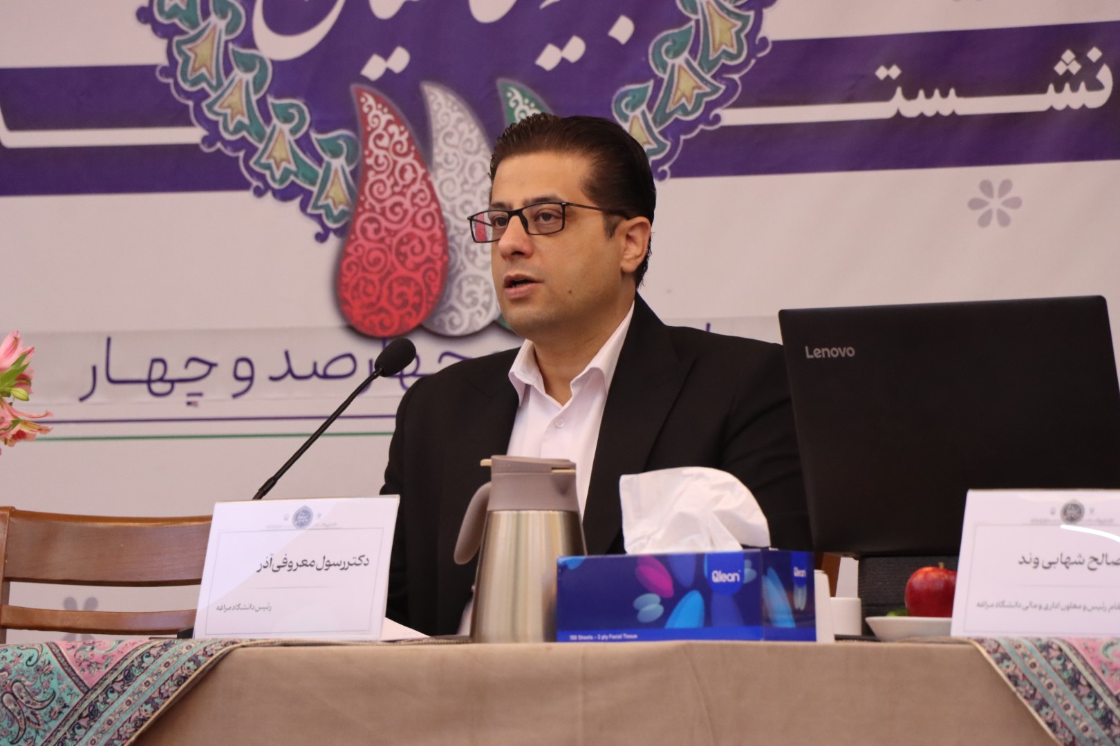 بر اساس گزارش روابط عمومی دانشگاه مراغه، در ابتدای این مراسم، دکتر معروفیآذر، رئیس دانشگاه، ضمن عرض تسلیت ایام فاطمیه و گرامیداشت روز ۱۳ آبان، از حضور مسئولان شهری، خیرین و فرهیختگان مراغه قدردانی کرد و گفت:به سهم خود از همه عزیزانی که از آغاز تأسیس دانشگاه مراغه تا امروز برای شکلگیری و رشد آن تلاش کردهاند، قدردانم. از خرید زمینهای اولیه تا ارتقای جایگاه فعلی دانشگاه در سطح کشور، حاصل زحمات و همدلی بزرگان این شهر و دانشگاهیان است.